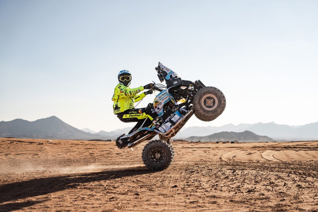 Físicamente, pilotar moto y quad es mucho más exigente que un SSV. El quad, con tracción trasera y suspensiones limitadas, transmite todas las irregularidades del terreno y tiende a lanzarte sobre los baches; la moto tiene más tracción, sobre todo en subida, pero exige más cuando estás cansado. El quad va mejor en arena blanda y piedras sueltas, mientras que la moto es más eficaz en terrenos irregulares. El SSV, gracias a la tracción integral, es estable en las dunas, pero tiene poca visibilidad y una conducción menos instintiva: se maneja con acelerador y freno, no con el cuerpo. Las curvas son más difíciles de leer y se pierde fácilmente la percepción de la dirección de las ruedas. En los impactos, en moto y quad el cuerpo amortigua, pero en el SSV se siente todo: si aterrizas mal, lo notas en la espalda. Las diferencias son muchas, ¡podríamos hablar horas del tema! Y también cambia la preparación mental: según el vehículo, debes aprender a confiar en él (o en ella), leer sus reacciones, gestionar la navegación y todo lo demás con extrema precisión.